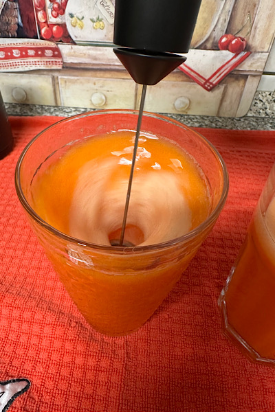 Normalerweise mixe ich uns morgens zum Frühstück unseren Vitamin-Drink, bestehend aus den Solubilisaten Astaxanthinund Vitamin D3/K2. Erstens ist es erfrischend, zweitens wird beides so noch besser vom Körper aufgenommen.