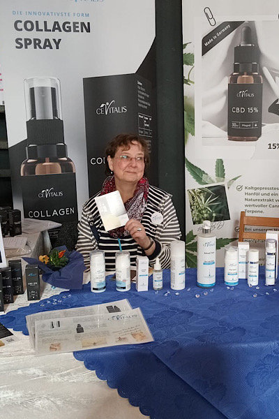 Eine meiner ersten Schritte waren Besuche, zusammen mit meiner Schwester, auf Direktvertriebe-Messen. Wir präsentierten den Besuchern und Ausstellern dort CeVitalis und die tollen Produkte – Produkte, die zum Teil Alleinstellungsmerkmale haben. Wir erzählten jedem von CeVitalis, der Firma, die noch so frisch auf dem Markt ist, dass viele sie (noch) nicht kannten, geschweige denn von Collagen mit Vitamin C zum Sprühen. Messeausstellungen sind für mich immer wieder tolle Erlebnisse! Etwas Spannenderes kann ich mir kaum vorstellen, so unterschiedliche Menschen mit unterschiedlichen Meinungen und Interessen, es gibt immer was zu lernen und zu lachen. Tausend tolle Gespräche und Impulse – herrlich.
